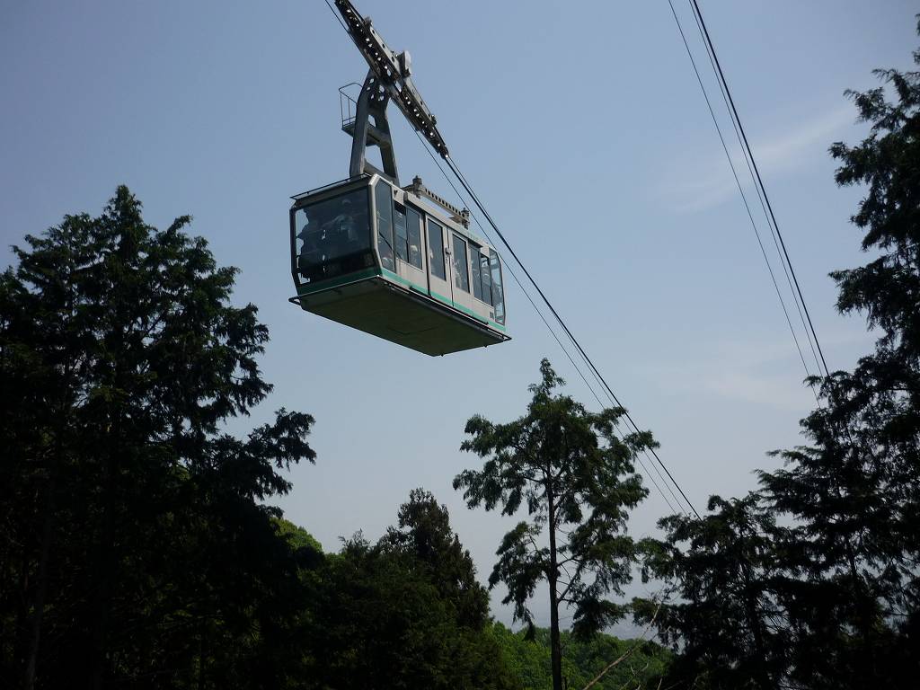 往:急坂登山道を徒歩(3時間20分) / 復:下山はロープウェイ(長蛇の列で1時間待ち)