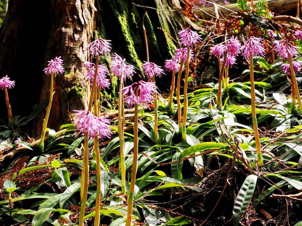 4月中旬を過ぎると山頂付近の自然研究路(自然を観察できる散策路やハイキングコース)で満開の花が見られる。