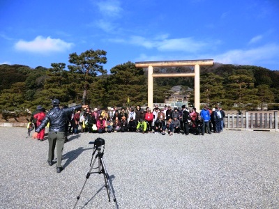 境内で全員で準備体操