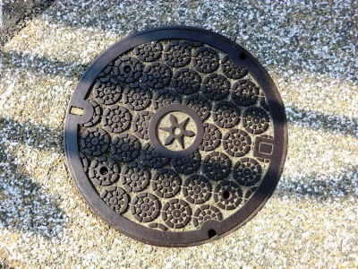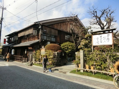 (寺田屋の付近で撮影) 平安時代の牛車の車輪「御所車」をデザインしたもの |