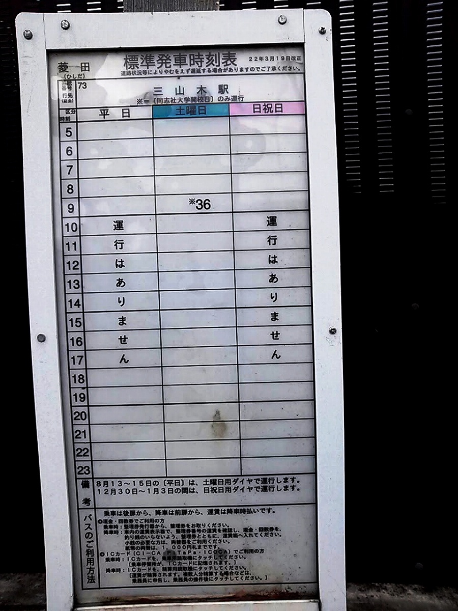 土曜日9時台1本のみ、しかも…(※同志社大学開校日のみ運行)