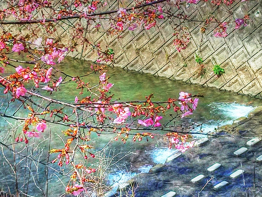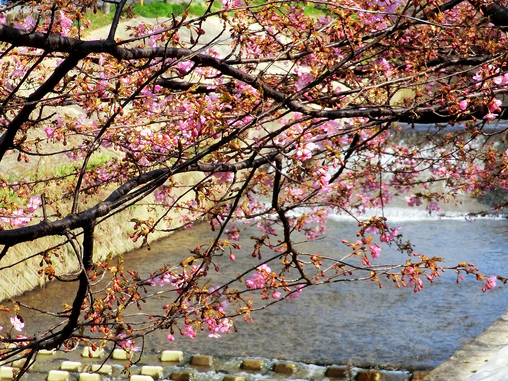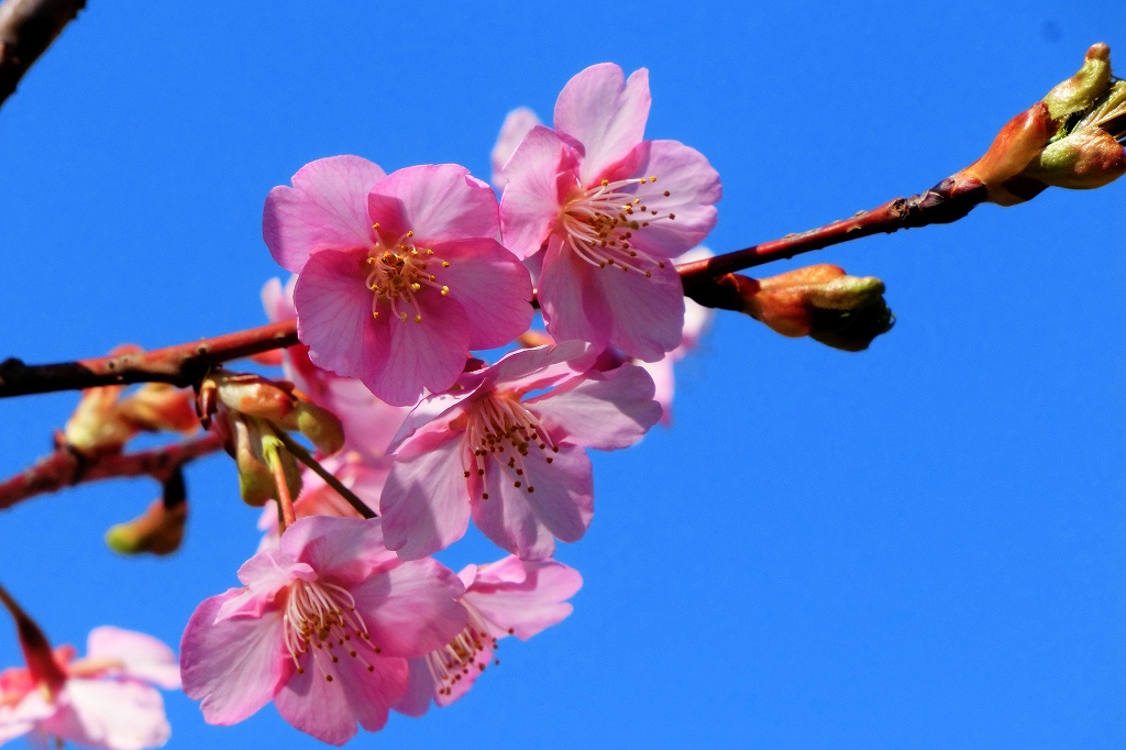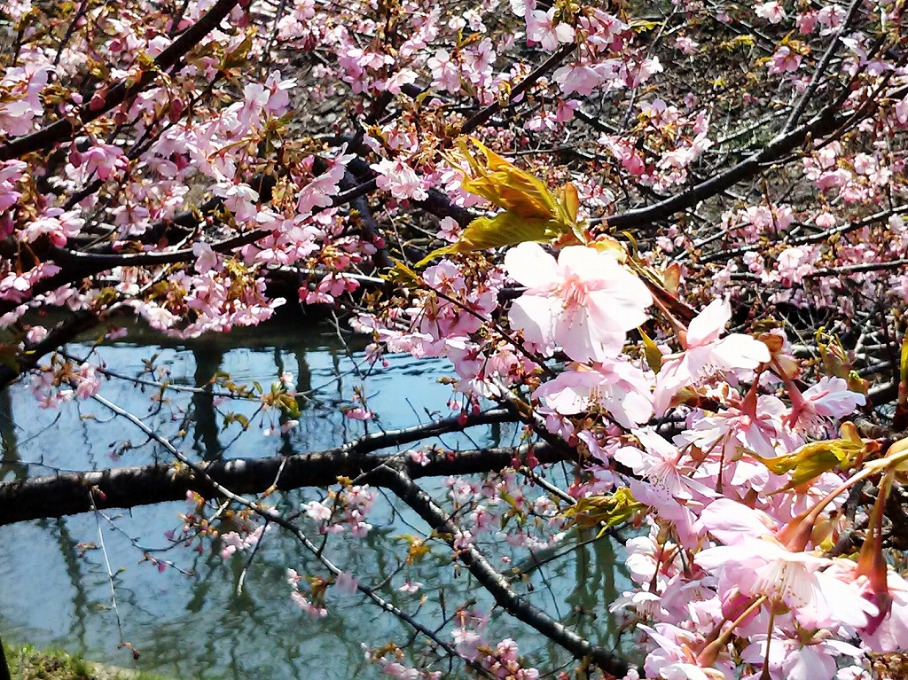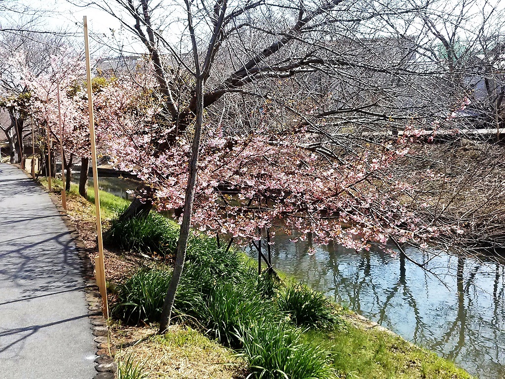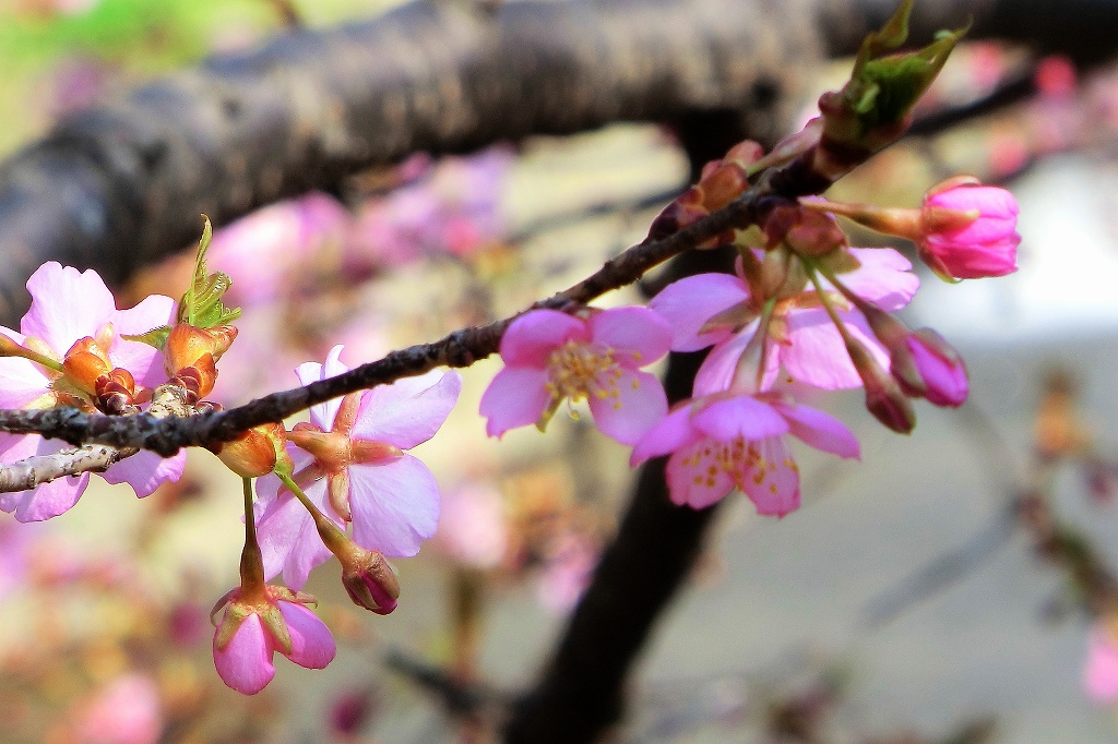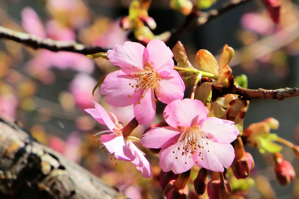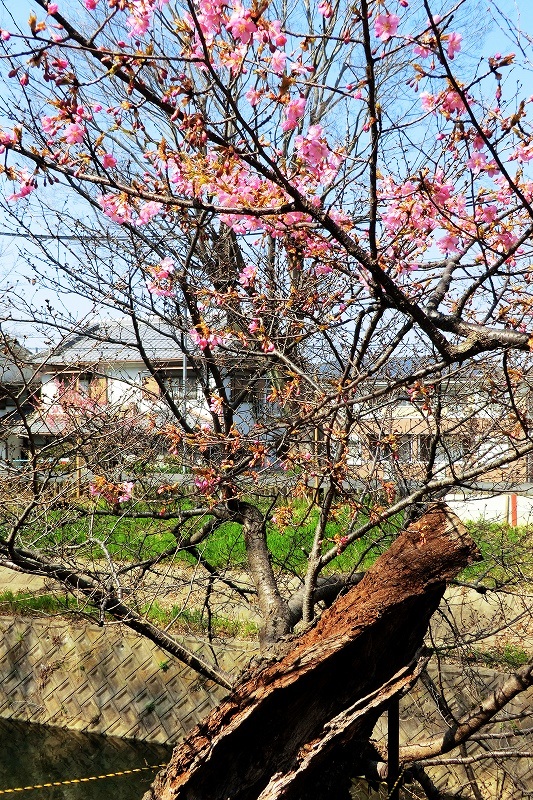 ところが、数本が満開に咲いている樹がある。種類は河津桜か?