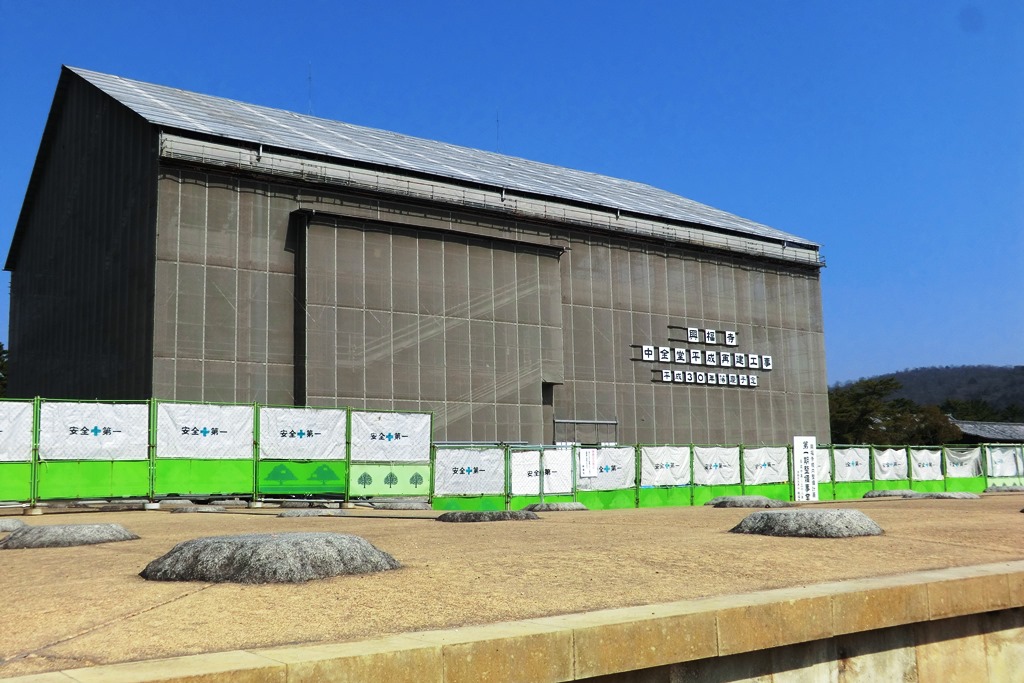 これまで7度も焼失して、その度に再建を繰り返してきた中金堂が、現在創建当初の姿に復元再建中。