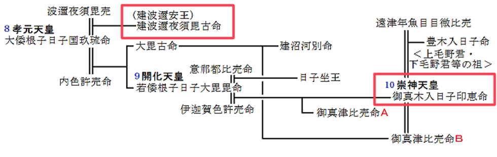 崇神天皇に対して謀反を起こした兄の武埴安彦は、戦いに敗れて斬首された。