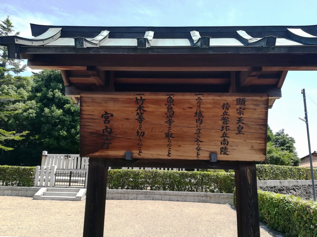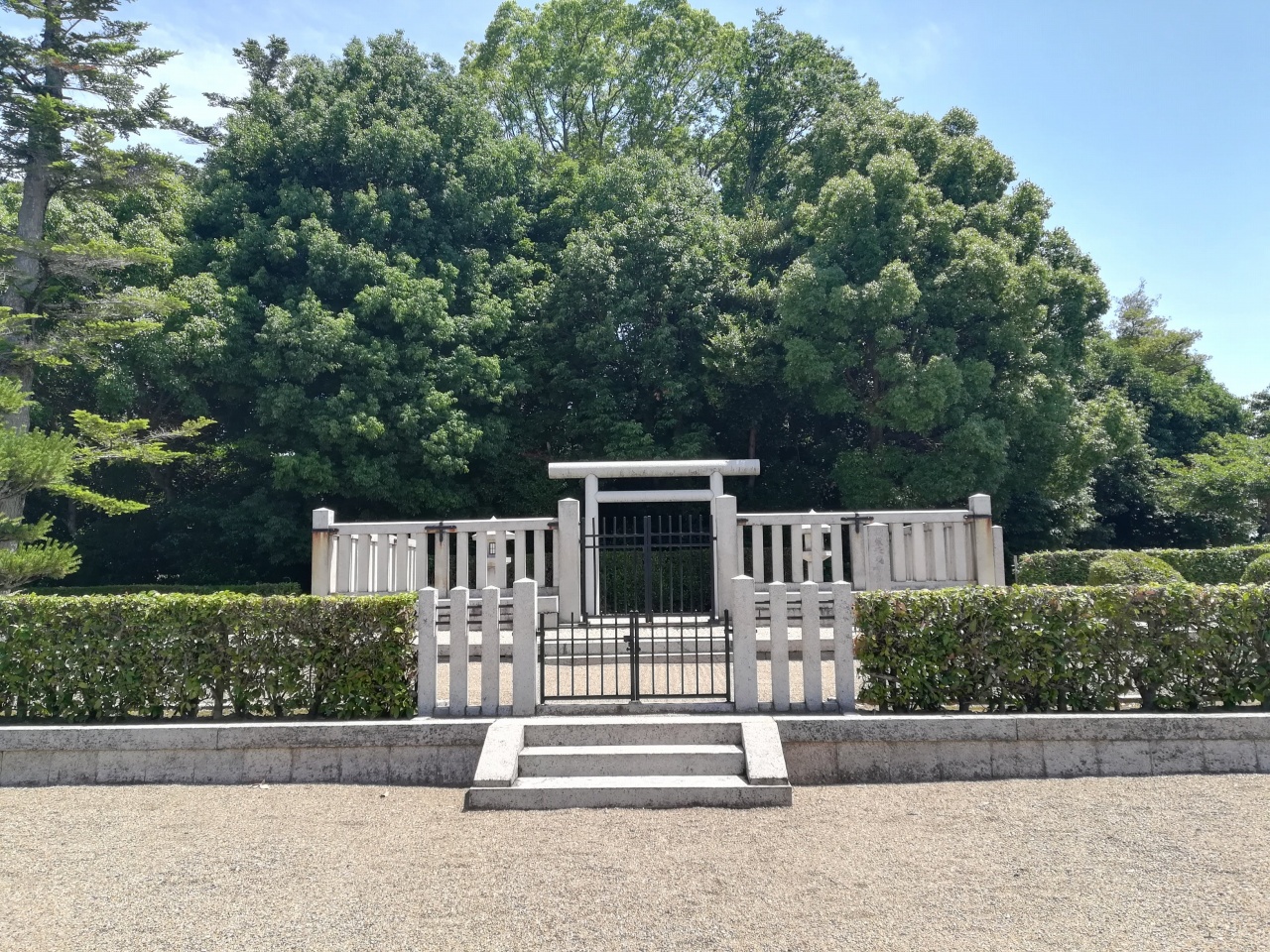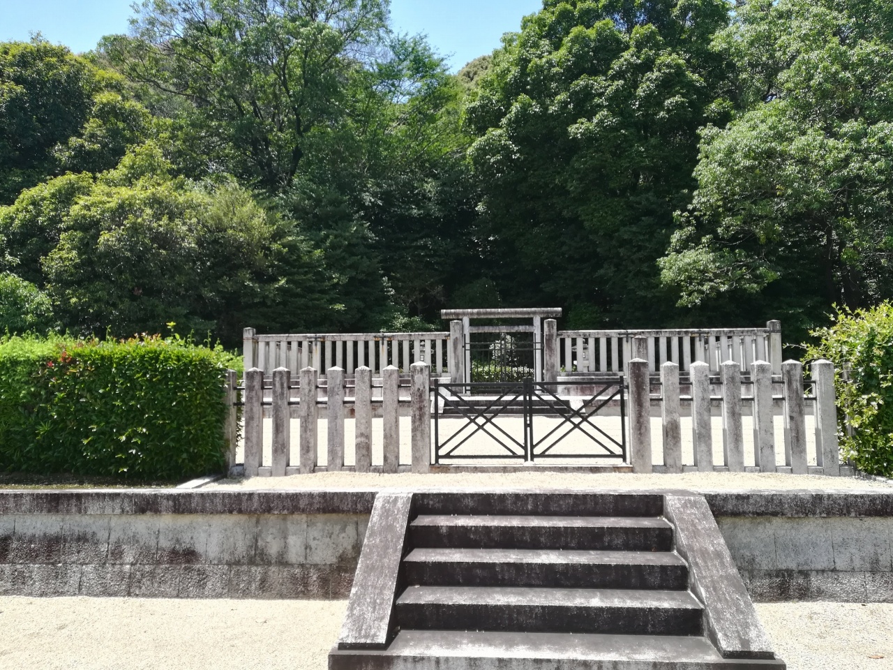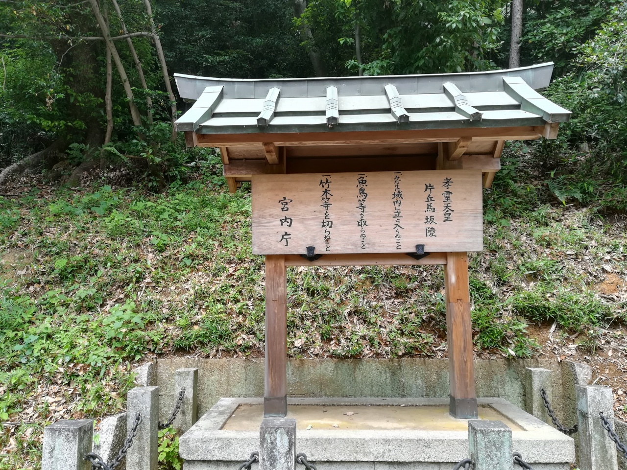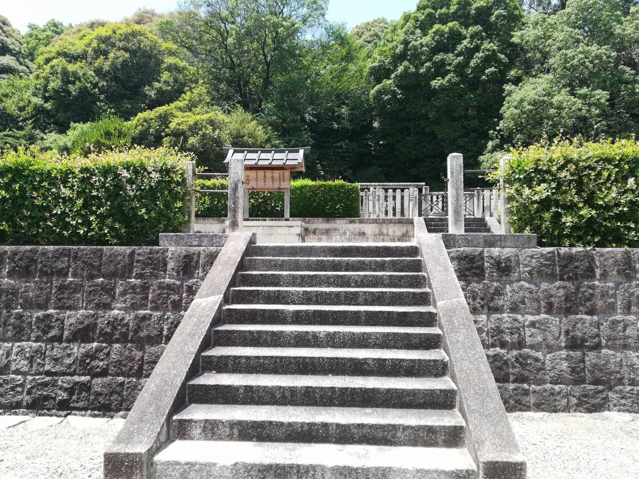 陵は、奈良県香芝市北今市にある傍丘磐坏丘南陵(かたおかのいわつきのおかのみなみのみささぎ)に治定。宮内庁上の形式は前方後円。