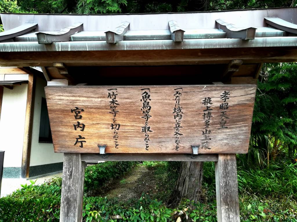 陵(みささぎ)の名は掖上博多山上陵(わきのかみのはかたのやまのえのみささぎ)。宮内庁により奈良県御所市大字三室にある俗称「博多山」に治定されている(位置)[6][7][8]。宮内庁上の形式は山形。
