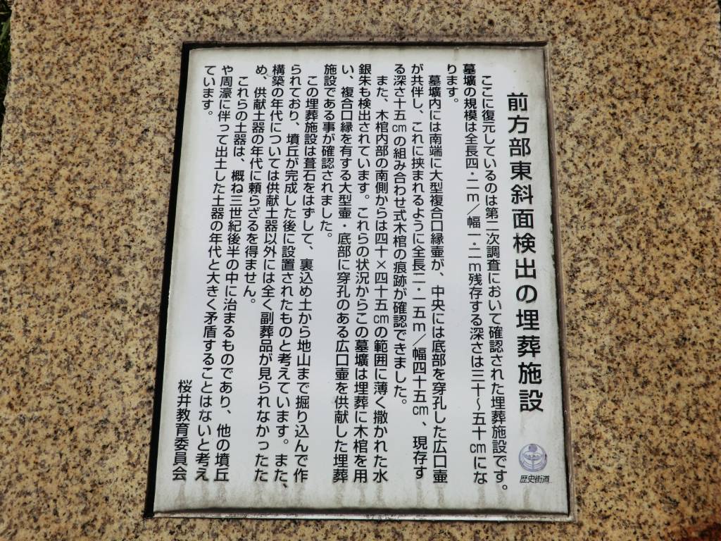 纒向遺跡の箸中に所在する箸中古墳群の盟主的古墳であり、出現期古墳の中でも最古級と考えられている前方後円墳。