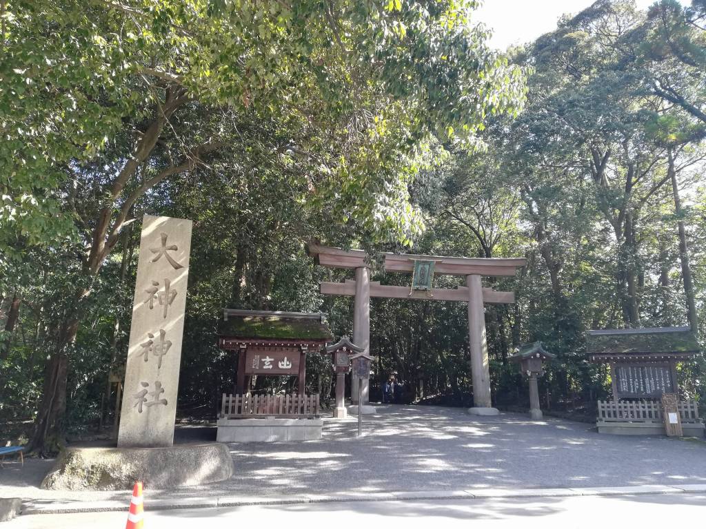 大神神社は纒向・磐余一帯に勢力を持った出雲ノ神の一族が崇敬し、磐座祭祀が営まれたとされる日本でも古い神社の一つで、神奈備信仰様式をとった神聖な信仰の場であったと考えられる。大穴持命が国譲りの時に、己の和魂を八咫鏡に取り付けて、倭ノ大物主櫛甕玉命と名を称えて大御和の神奈備に鎮座した。これが三輪神社の創始である。
