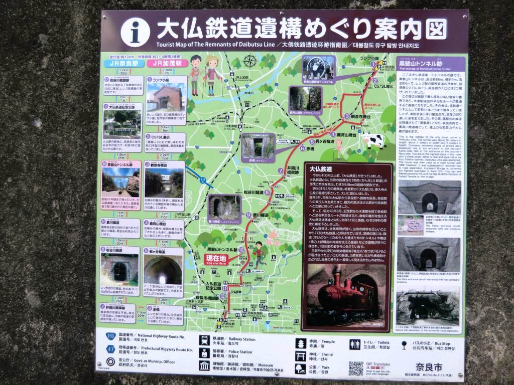 ⇒ 元正天皇 奈保山西陵 ⇒ 元明天皇 奈保山東陵 ⇒ 大仏鉄道黒髪山トンネル跡 ⇒ 聖武天皇佐保山南陵 ⇒ 奈良女子大学正門 ⇒ 近鉄奈良駅