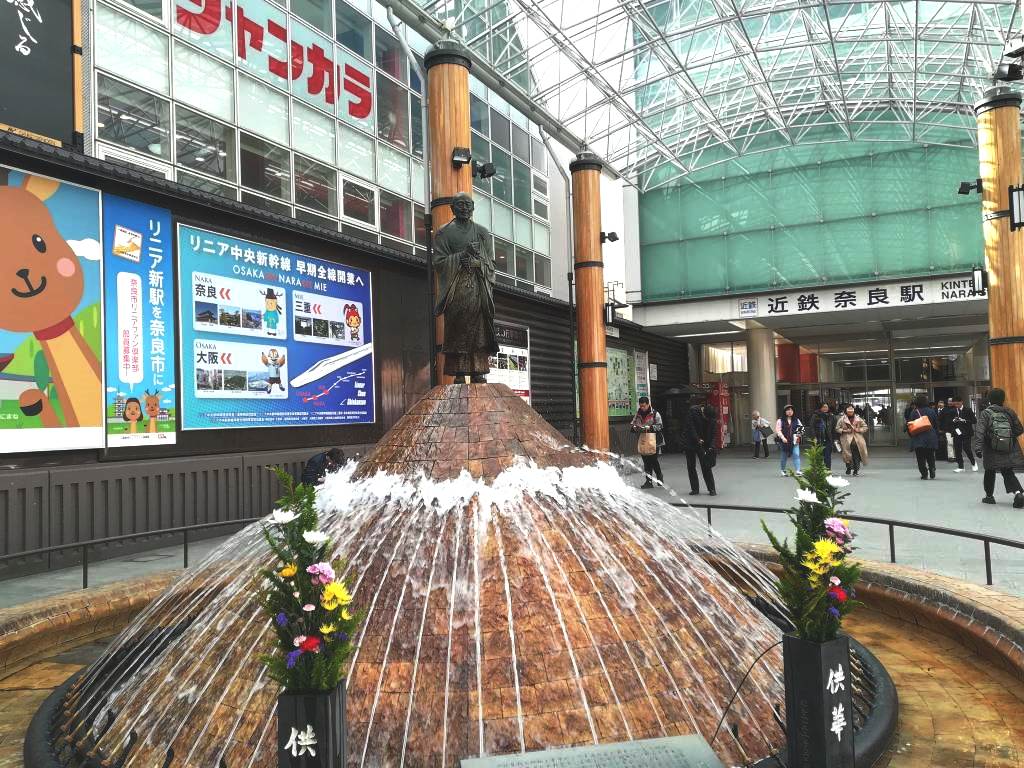 近鉄奈良駅東口 待合わせの名所「行基菩薩像の噴水」