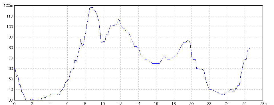 | 水平距離 | 26.57km | 沿面距離 | 26.65km |