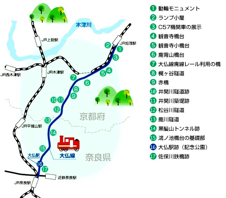 現在の関西本線の前身で明治の5大私鉄の一つとうたわれた「関西鉄道」が名古屋方面から大阪への進出を目指し、「加茂駅」から現在の奈良駅北1.1kmの所に仮設的に作った「大仏駅」間を結ぶ8.8kmと、翌年に開通した奈良駅までの通称です。