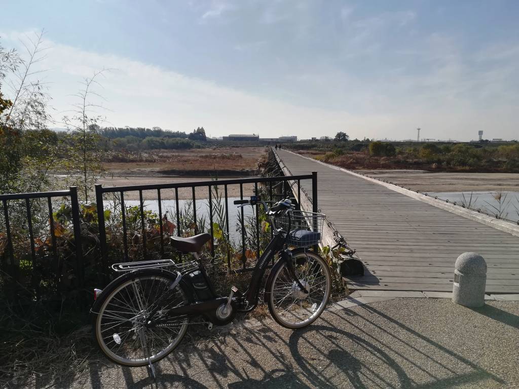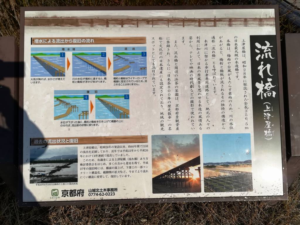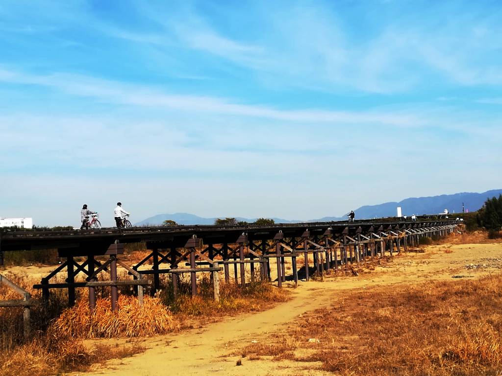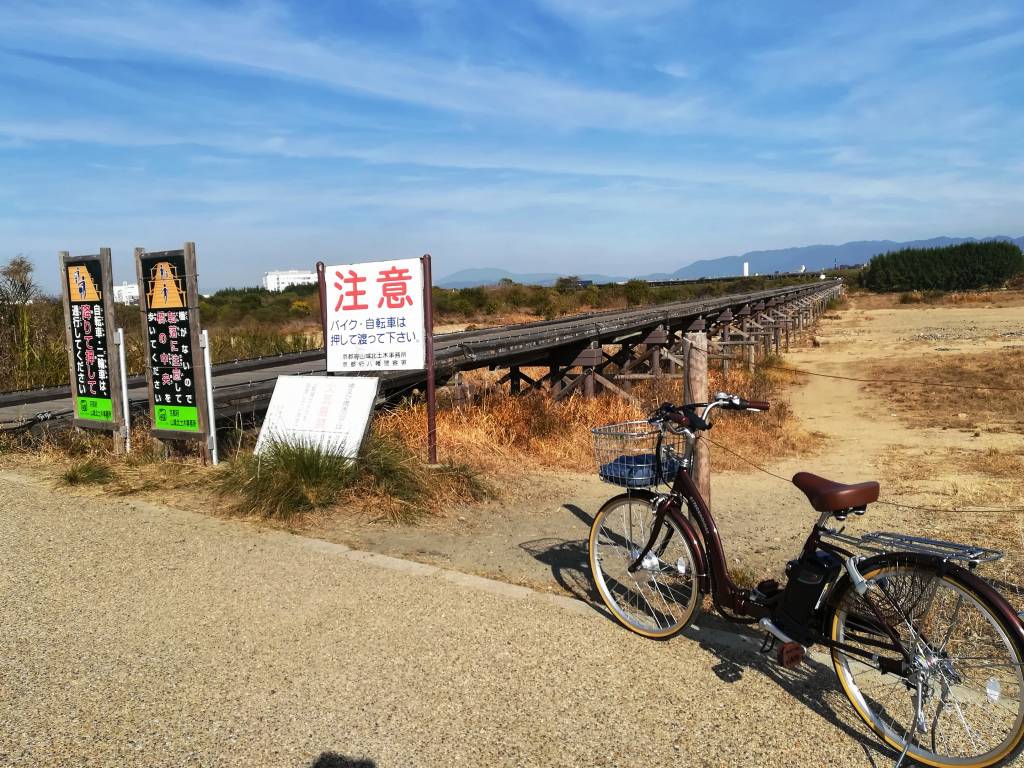 ⇒ 流れ橋 ⇒ 京都岡本記念病院 ⇒ (戻り京奈和自動車道辺りで左折)木津川堤自転車道 ⇒ 流れ橋 ⇒ 木津川堤自転車道