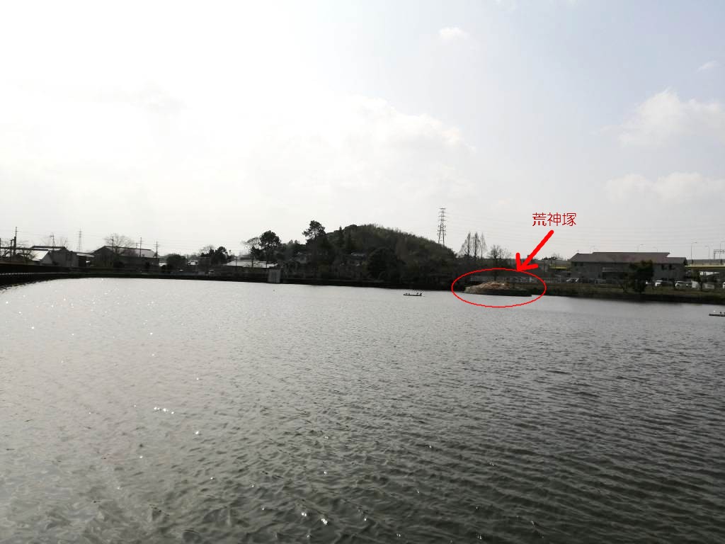 池の中にある荒神塚と呼ばれる小さな塚が池の名前の所以です。