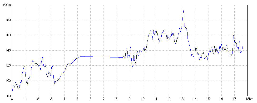 | 水平距離 | 17.62km | 沿面距離 | 18.04km |
