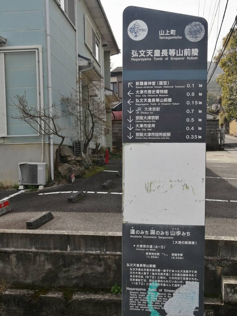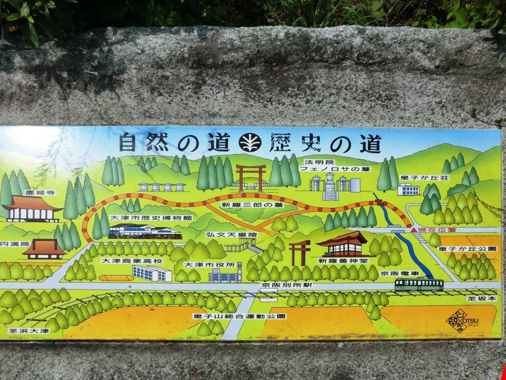 ⇒ JR大津京駅 ⇒ 近江神宮 ⇒ 皇子山古墳 ⇒ 法明院(フェノロサの墓) ⇒ 弘文天皇陵 ⇒ 新羅善神堂