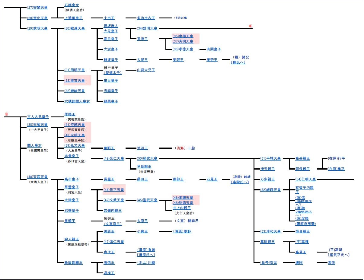 以降、天武系統の天皇が称徳天皇まで続く。