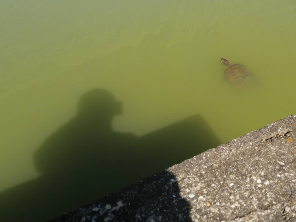いつもは亀や鯉も数十匹寄ってくるけれど、今日は数匹しか見かけない。鯉は現れない。池を大掃除したのかな。なんか淋しい