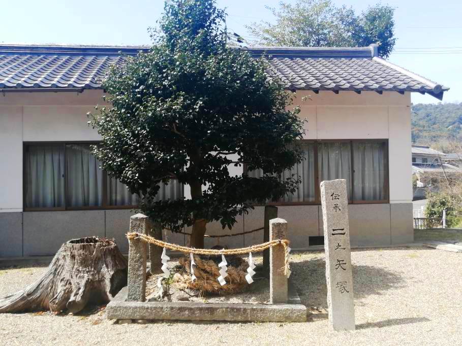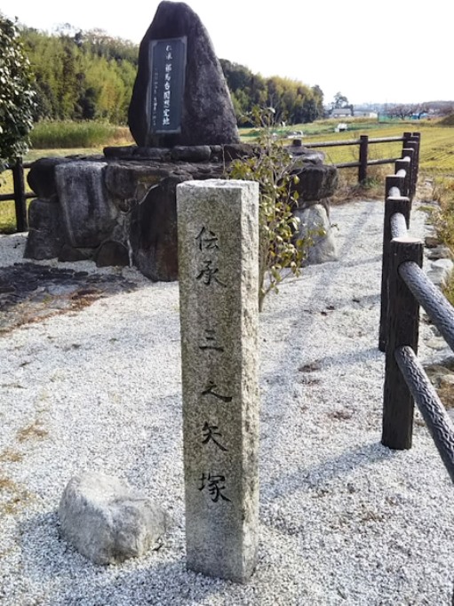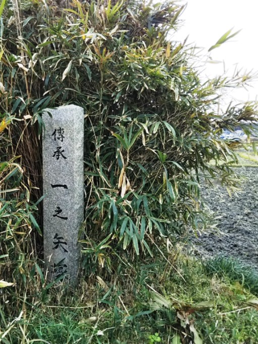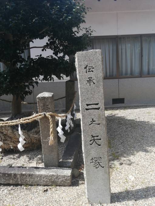 一之矢が落ちたのが神社の500m南側、三之矢が落ちたのは500m北側の場所で、その射落ちた3箇所が伝承として残っていて、ともに石碑が建っている。