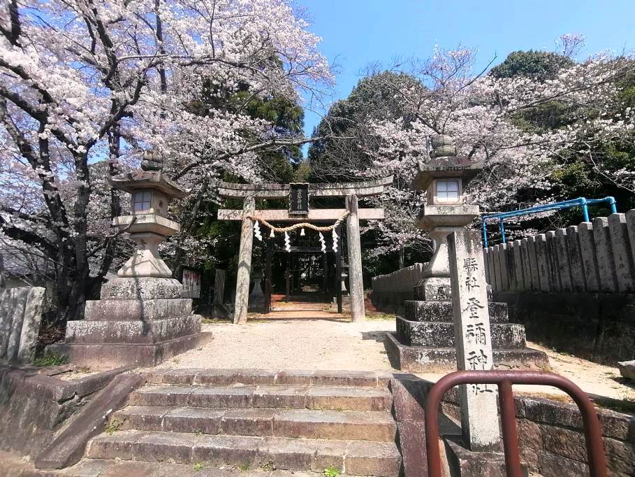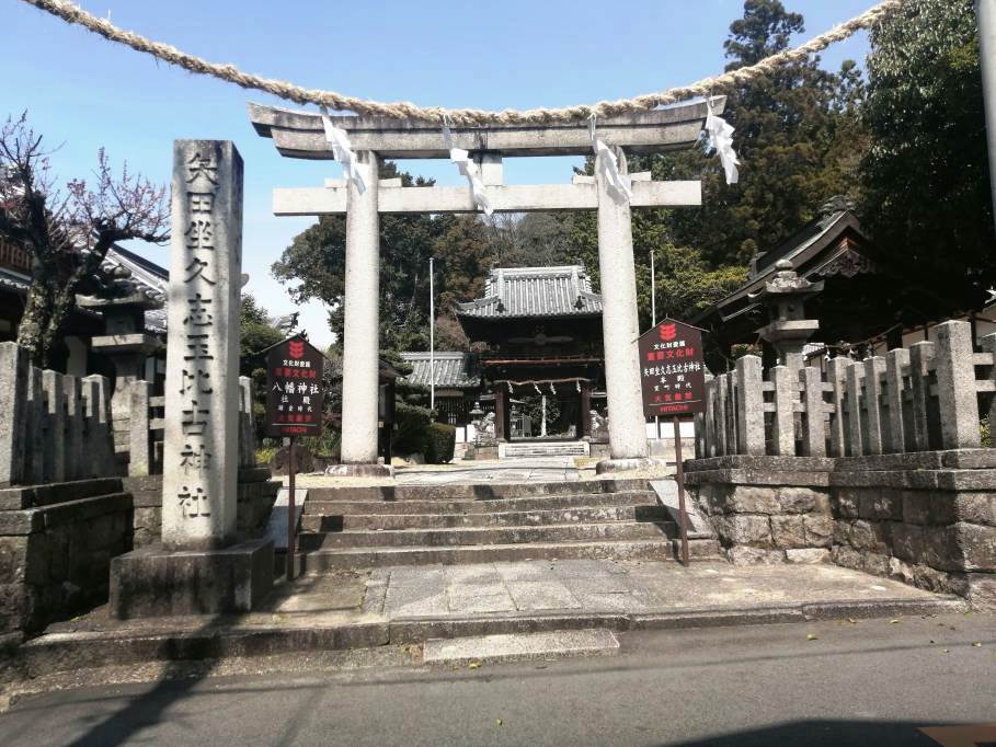 神社境内でお参りしていた地元の話好きのおばあさんが、この神社のある地は古墳で遠くから見るとその姿が前方後円墳であることがよく分かると話してた。