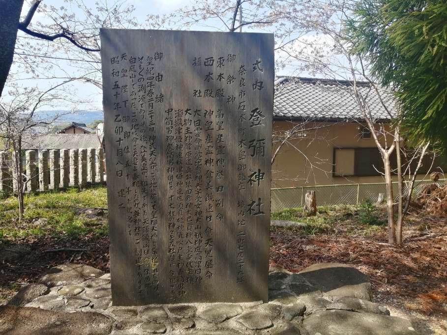 皇紀四年春二月二十三日、神武天皇がこの地に於いて皇祖天神を祭祀されたのが、そもそもの淵源であり、その後、登美連が祖先である天孫饒速日命の住居地-白庭山-であったこの地に命ご夫妻を奉祀したのが、当神社の創建であります。