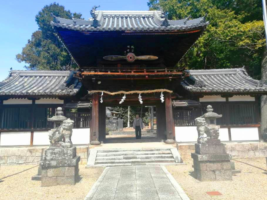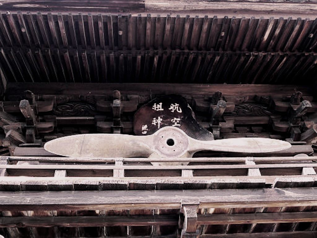 祭神である櫛玉饒速日命が天磐船に乗って空を飛んだという、先代旧事本紀に記されている故事により航空祖神として崇められ、毎年9月20日に航空祭が行われる。プロペラが奉納され楼門屋根裏から吊されている。