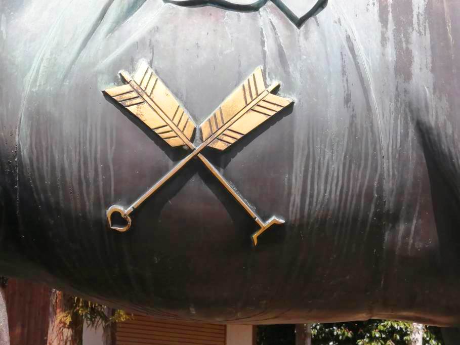 饒速日命が天照大御神から「天羽々矢」を授かり降臨、自らの拠点(宮居)を定めるため3本放ちました。
