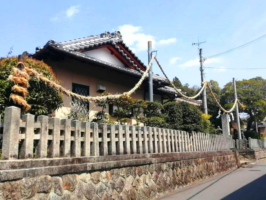 門前には長い勧請縄が張ってある。毎年1月8日に催される「綱掛祭」の際に掲げられる。