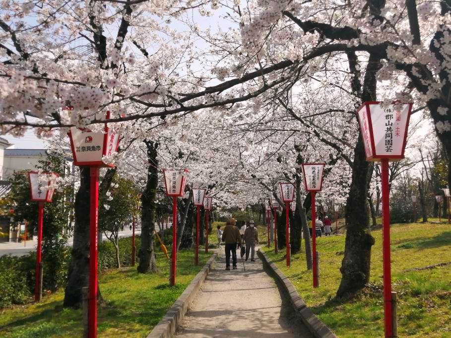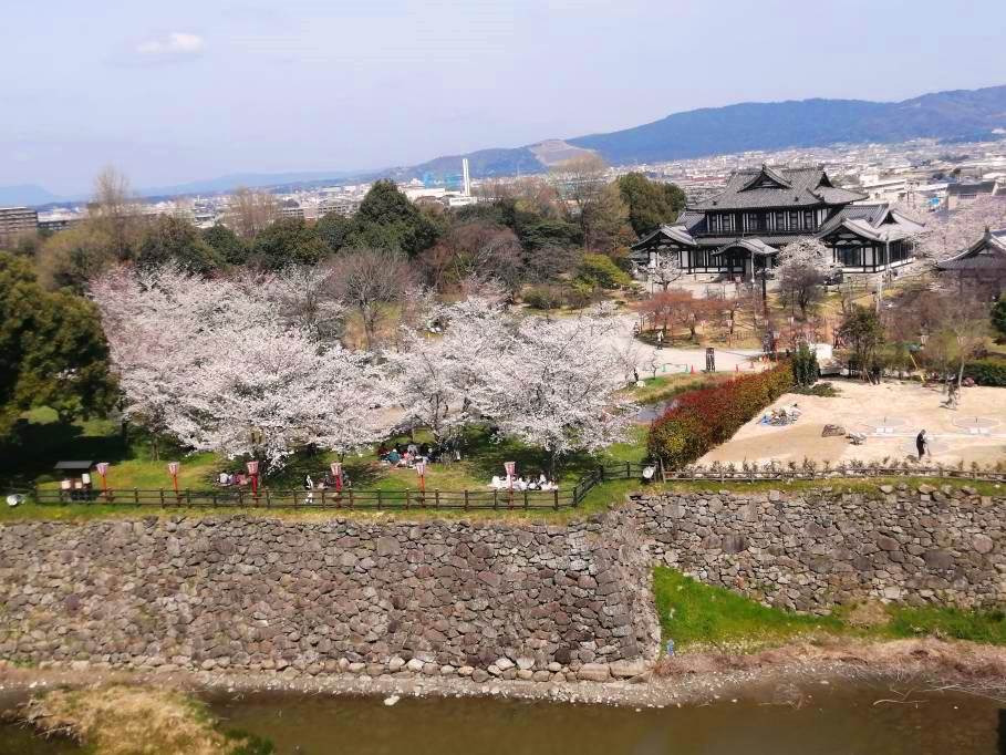 城跡は桜の名所としても有名で、満開の桜のもとで開催される「大和郡山お城まつり」は多くの人々で賑わう。