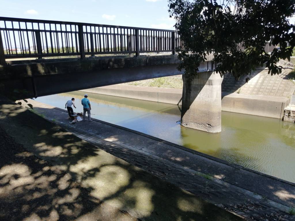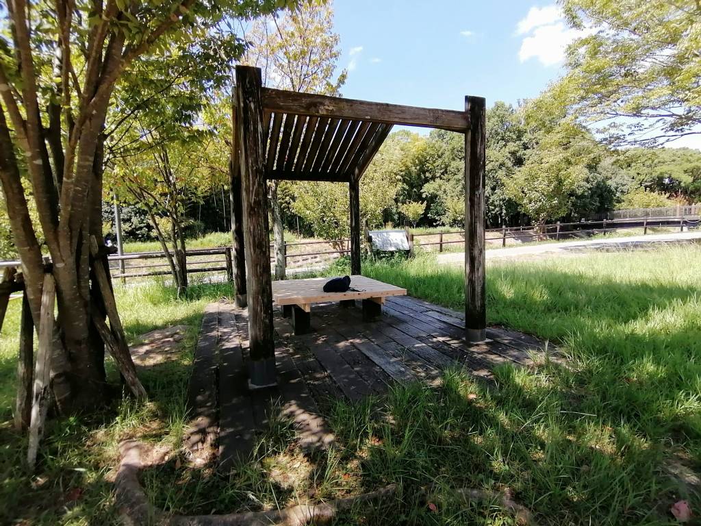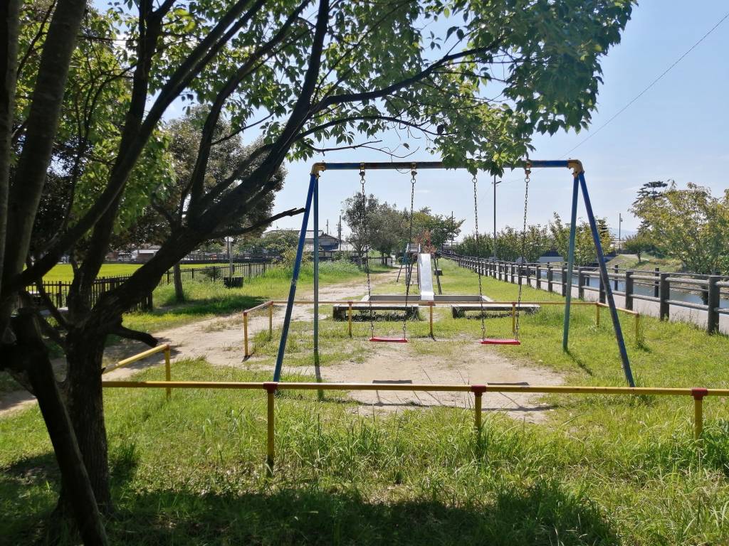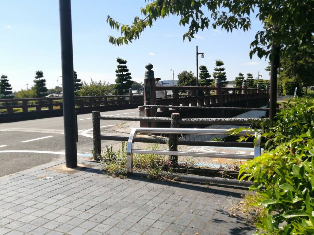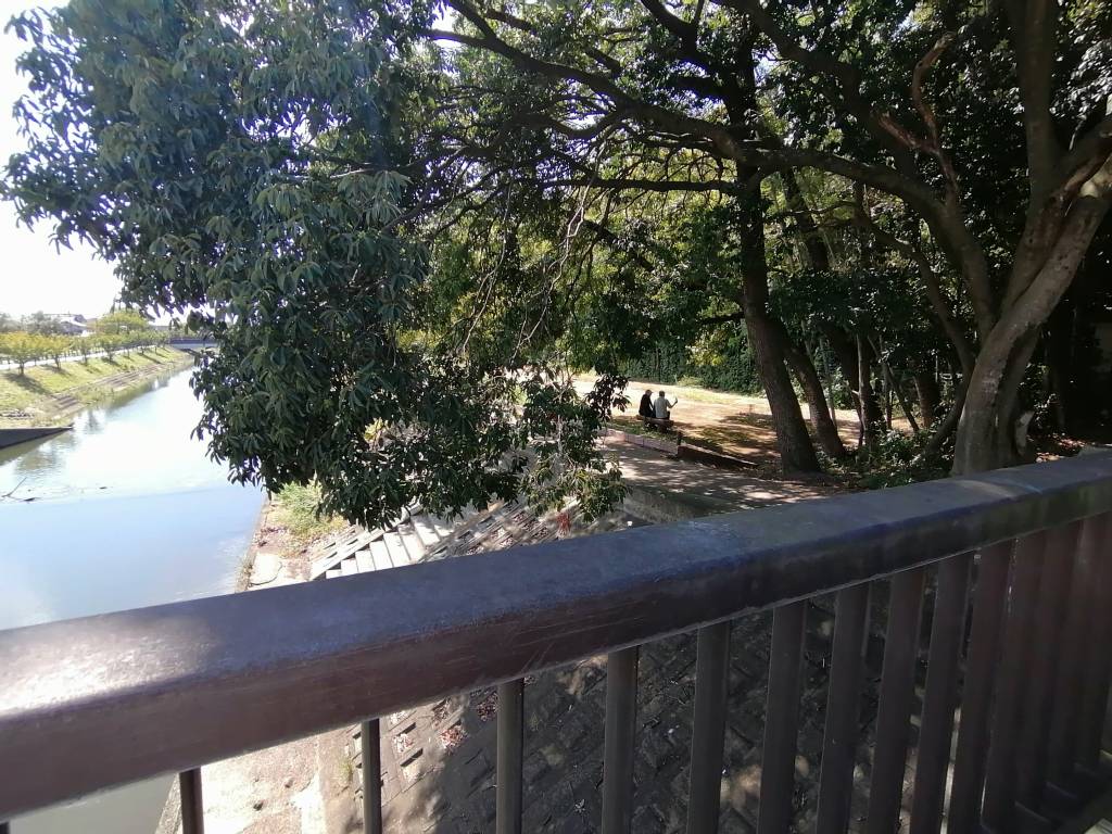 お気に入りの日陰のベンチ 先客が居て仕方なく川を挟んで向かい側の公園へ