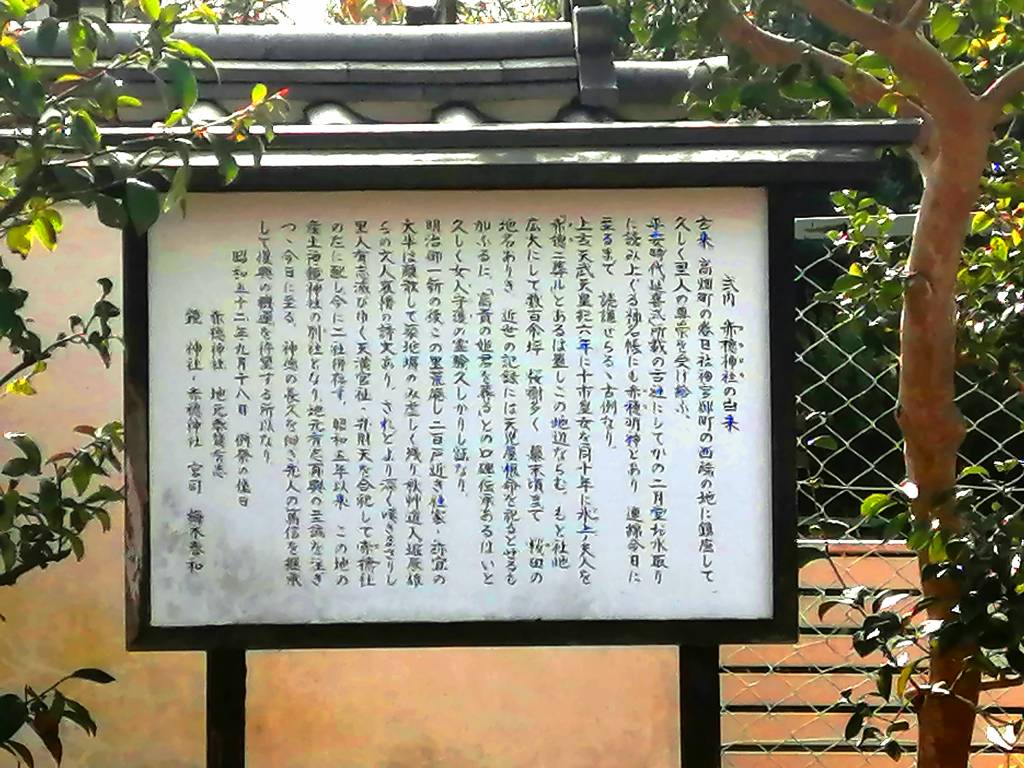 『延喜式』所載の神社で、二月堂のお水取りの際に読み上げられる『神名帳』にも「赤穂明神」とある。