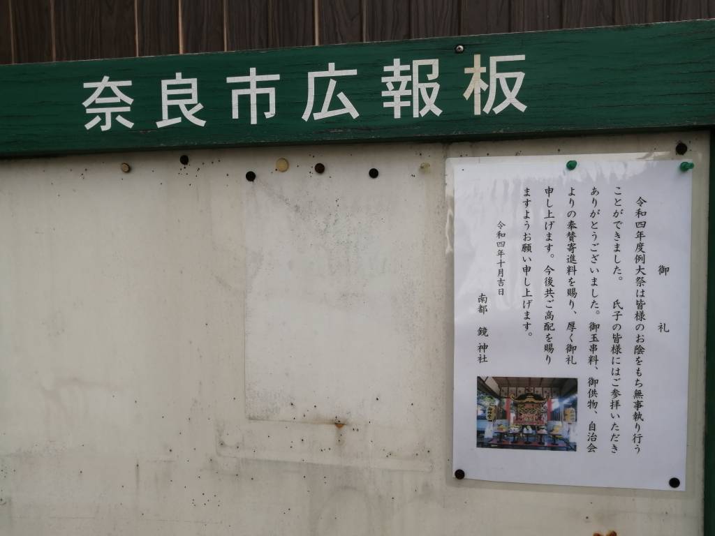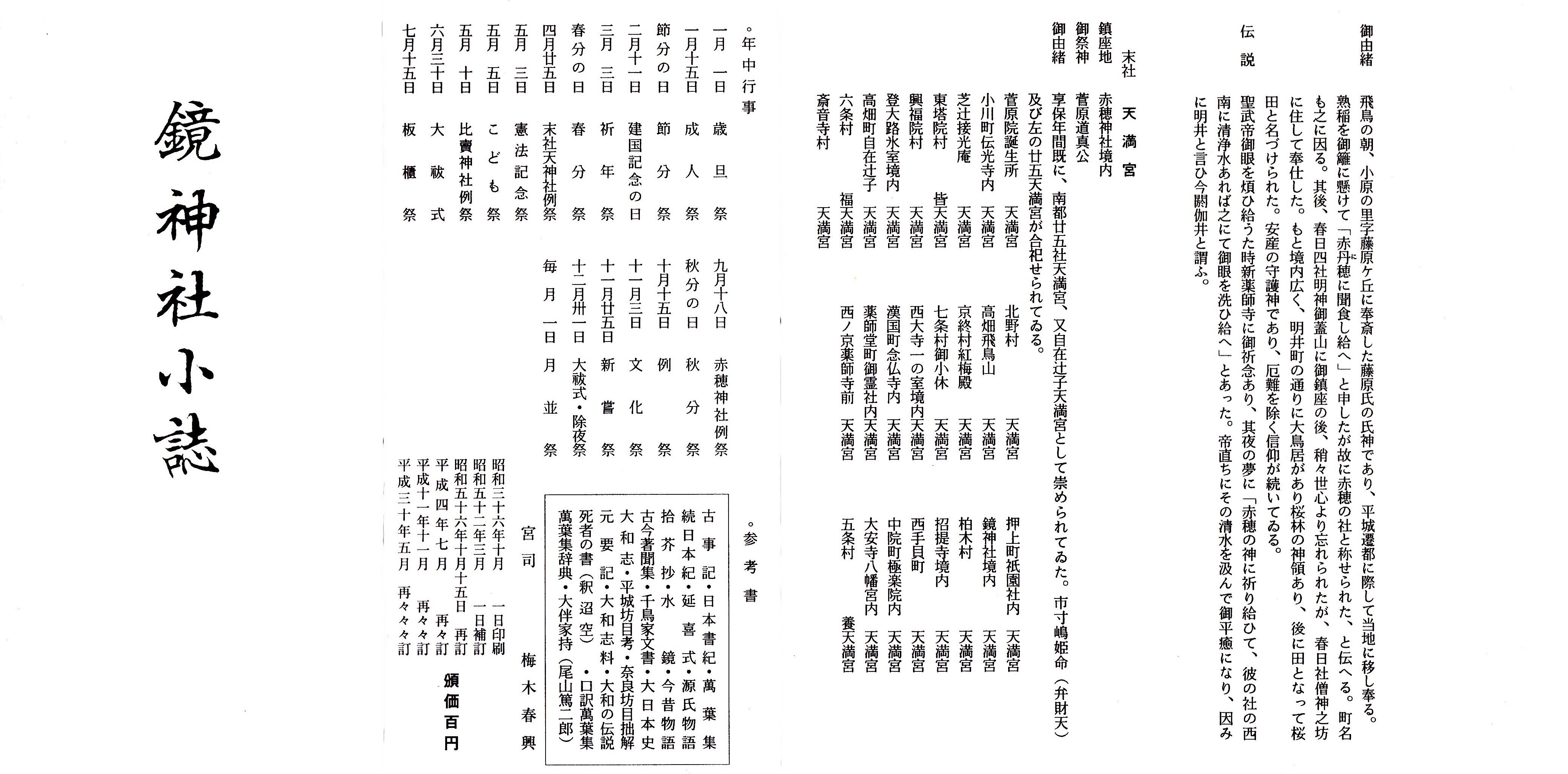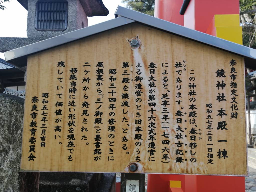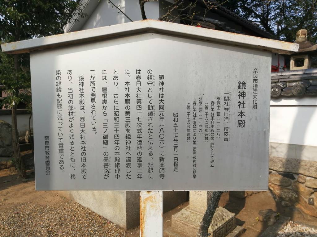 1930年(昭和5年)、この近所にある新薬師寺のそばの鏡神社の別社となり現在に至る。