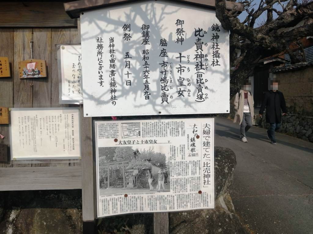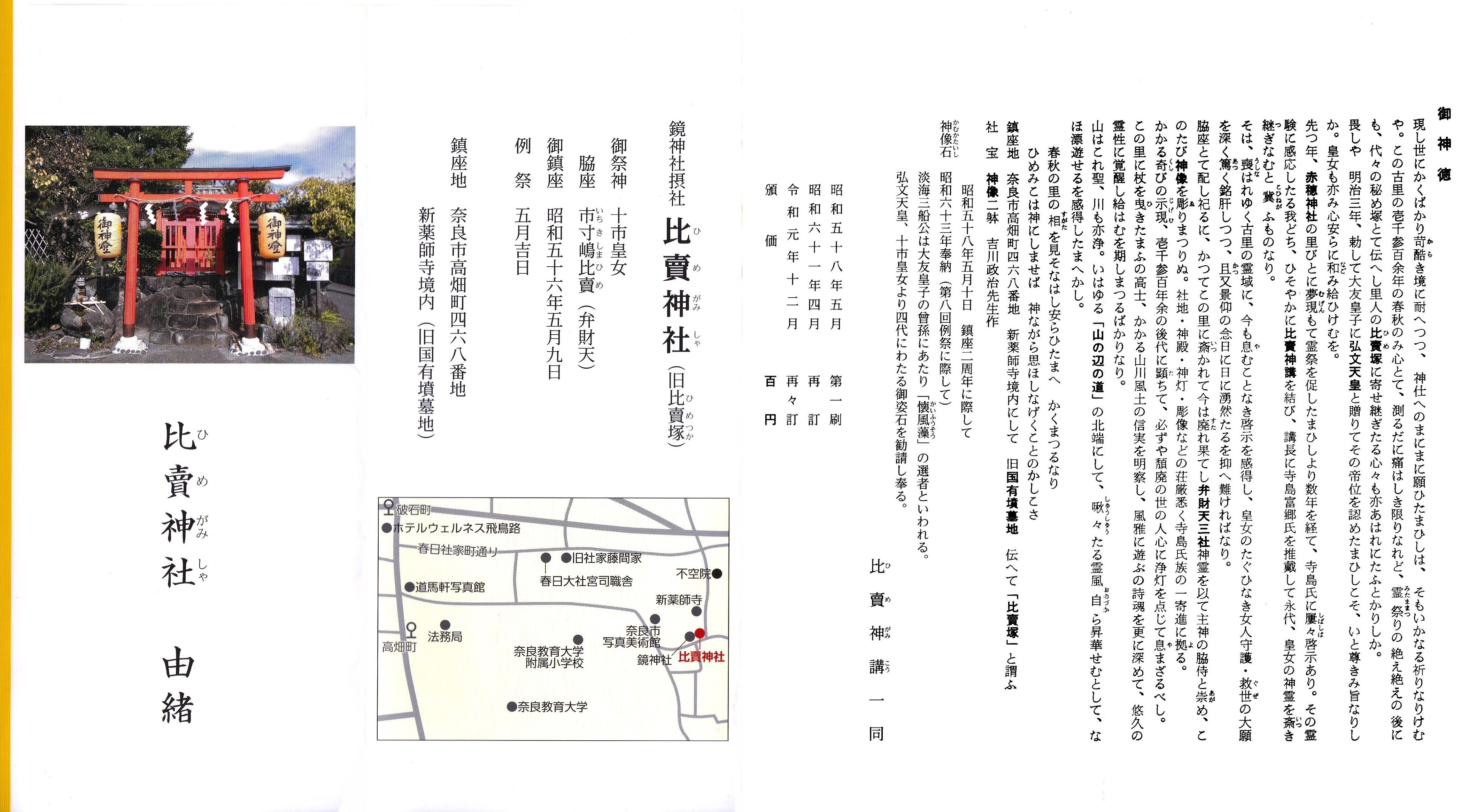 1980年(昭和55年)夏、新薬師寺・南都鏡神社の協力により地鎮祭が、同年末に上棟祭が行われた。1981年(昭和56年)、十市皇女の命日である4月7日を新暦に換算した日である5月10日に鎮座奉祝祭が行われ、十市皇女を祀る比賣神社が誕生した。 (Wikipedia)