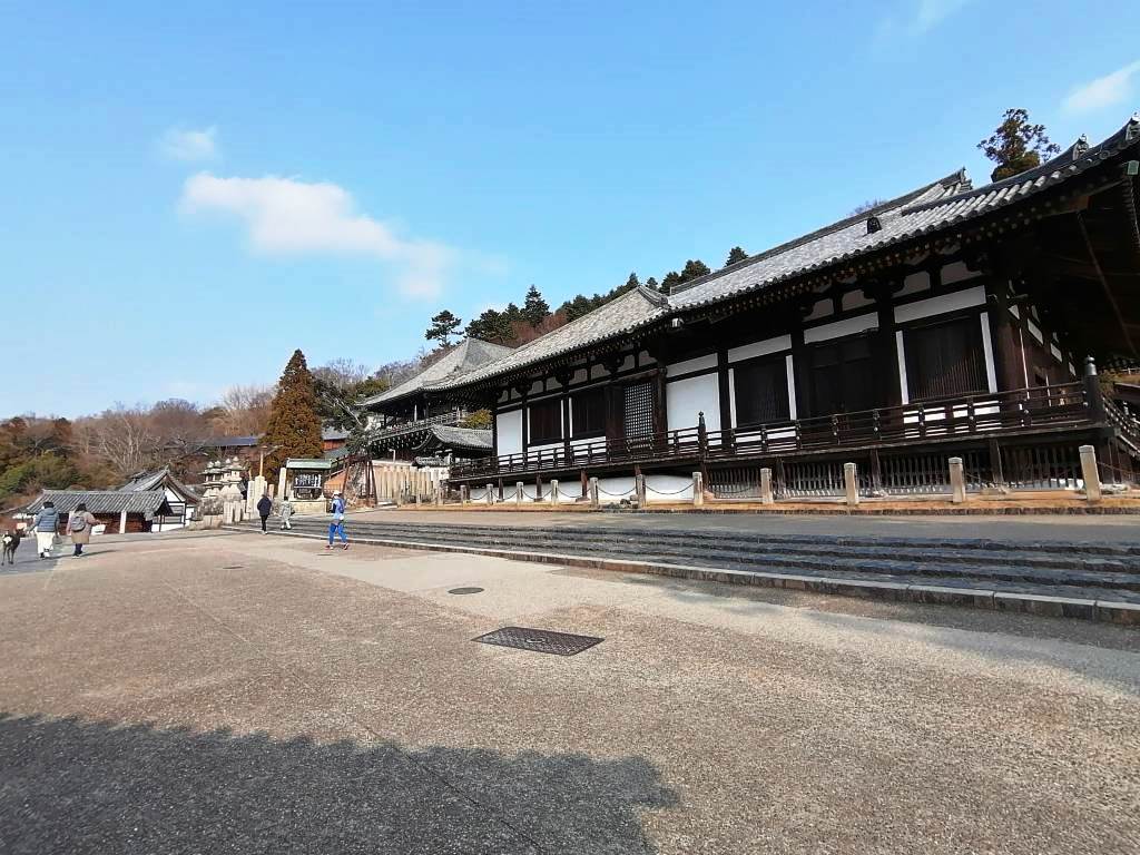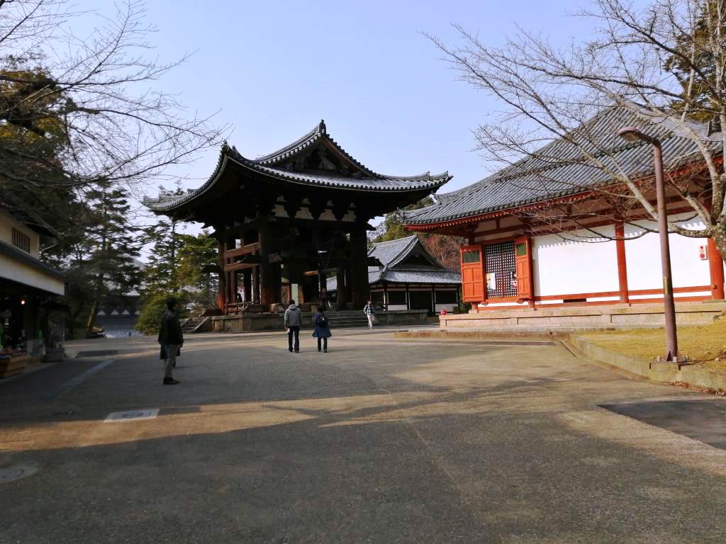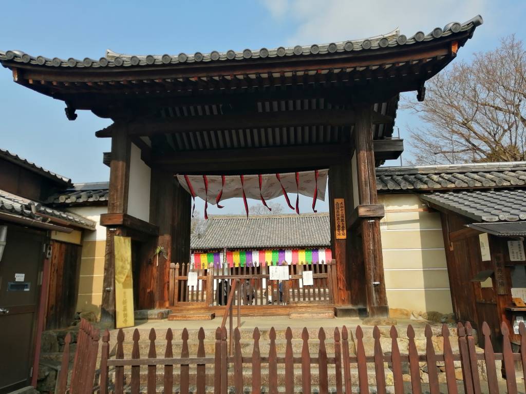 天平19年(747年)に、聖武天皇の病気平癒を祈って光明皇后により創建され、7体の薬師如来像が安置されたと言われています。かつては七堂伽藍が整った壮大な寺院で、創建当初の建造物として本堂(国宝)が今に残ります。東門・南門・鐘楼・地蔵堂はいずれも鎌倉時代に建立され、重要文化財に指定されています。