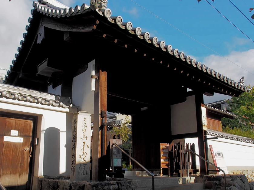 春日の杜から高円山へと続く門前の小道は、古き奈良の風情を残し、今日も古都を旅する人々が静かに往き交います。ここに足跡を残された弘法大師(空海)を偲ぶ土地の人たちの信仰により「福井之大師」(福井は 不空=福 に発する旧土地名)の別称で呼ばれ、「女人救済の寺」としも知られる所です。