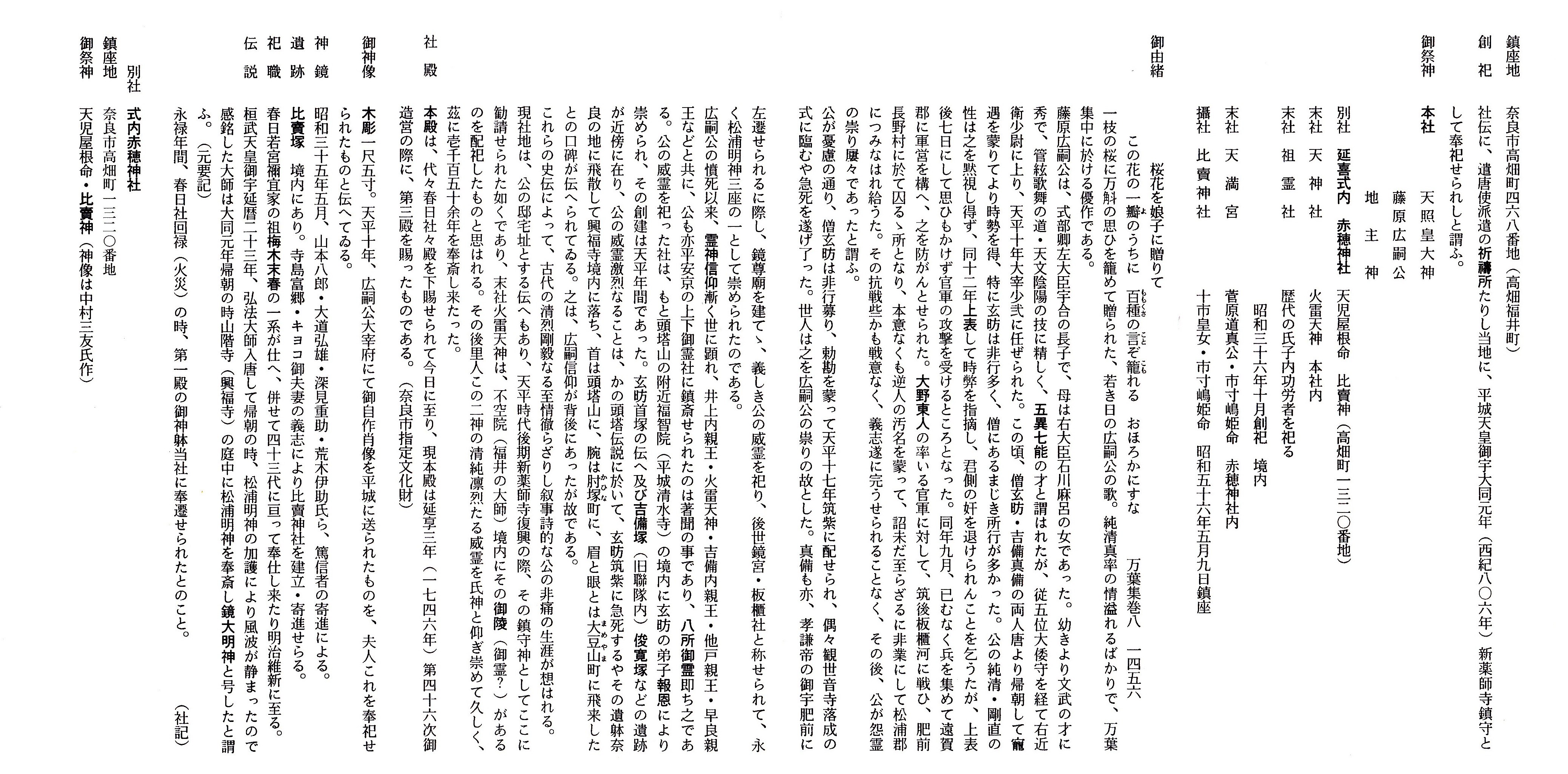 天児屋根命を主祭神とし、天満宮・弁才天を合祀した社を併置している。