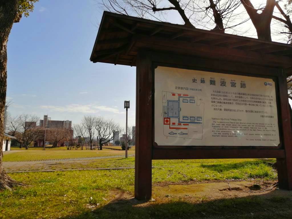 史跡公園内には復元された後期難波宮の大極殿基壇や前期難波宮の八角形建物などが立体的に遺構表示されています。また、大阪歴史博物館の地下には前期難波宮の倉庫群の遺構が保存され、一般公開されています。