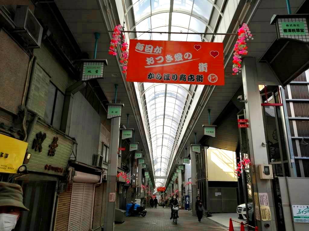 大坂冬の陣後に埋め立てられた大坂城南惣構(みなみそうがまえ)堀の遺構である空堀通の西半分、松屋町筋から上町筋に至る中央区側の東西約800 mのアーケード商店街。