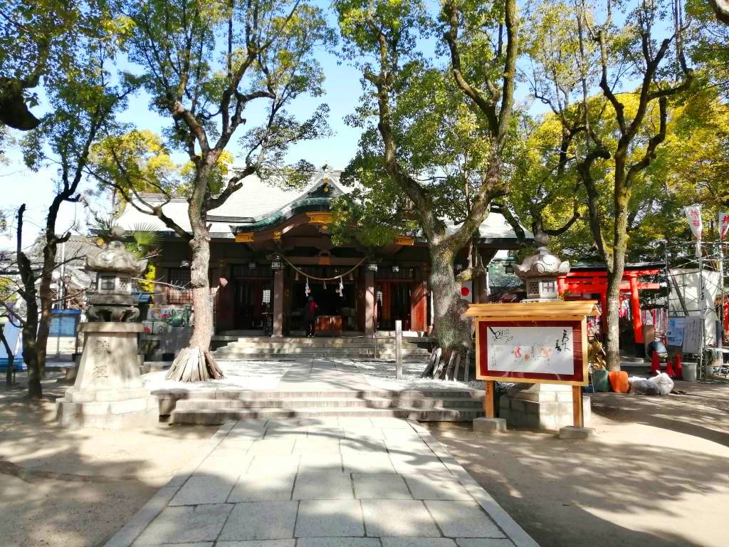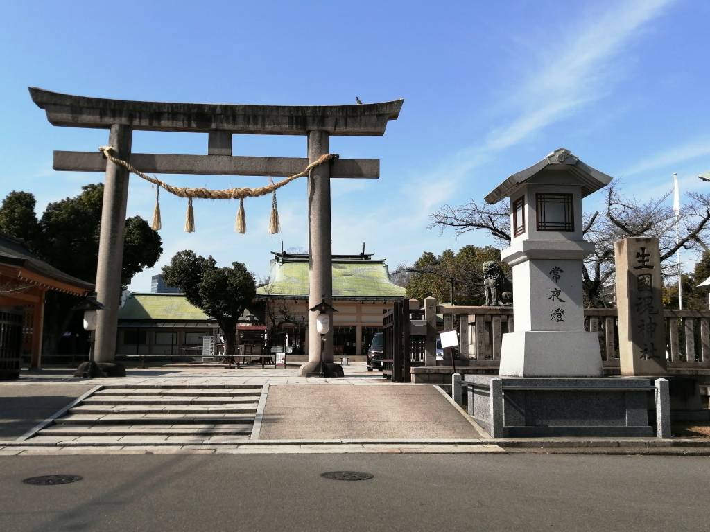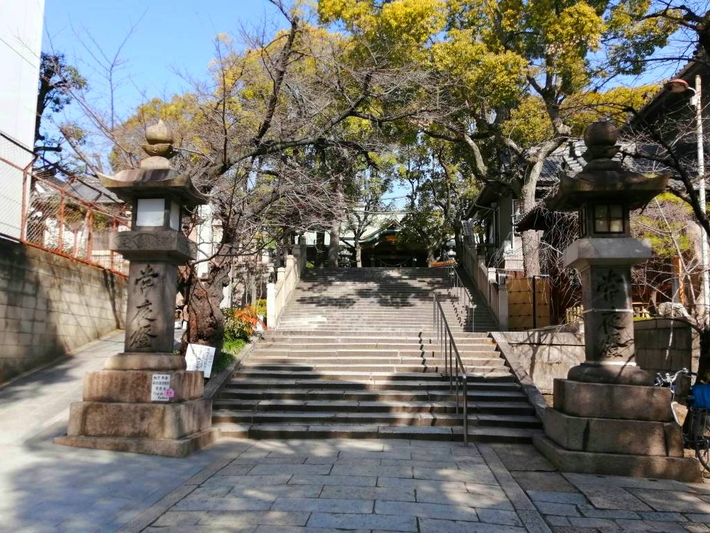 大阪市中心部、難波宮跡や大坂城から南西方の生玉町に鎮座する。