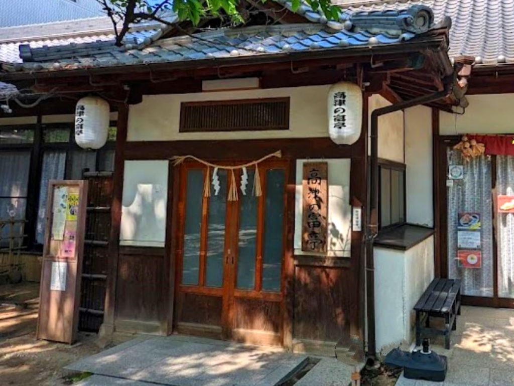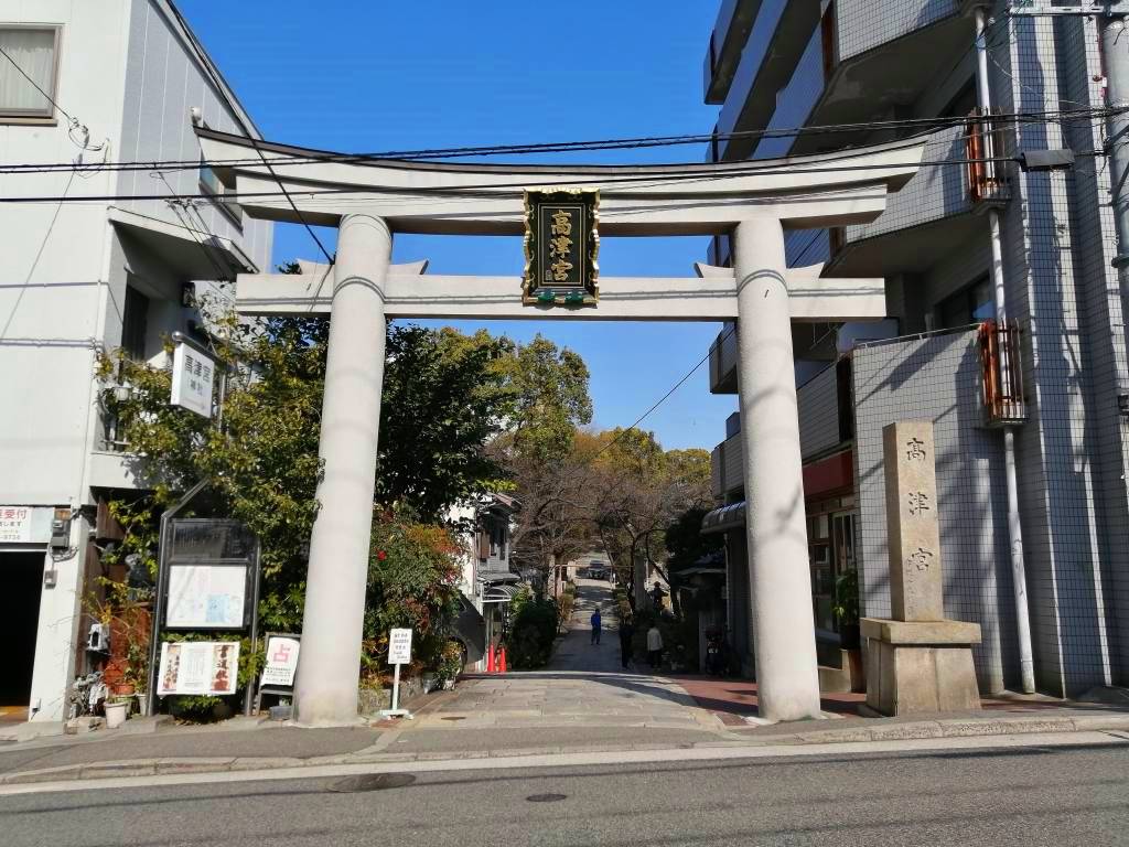 古典落語「高津の富」「高倉狐」「崇徳院」の舞台として知られ、古くから大坂町人の文化の中心として賑わっていた。境内の参集殿は「高津の富亭」と名づけられており、落語の寄席や文楽などが行われている。