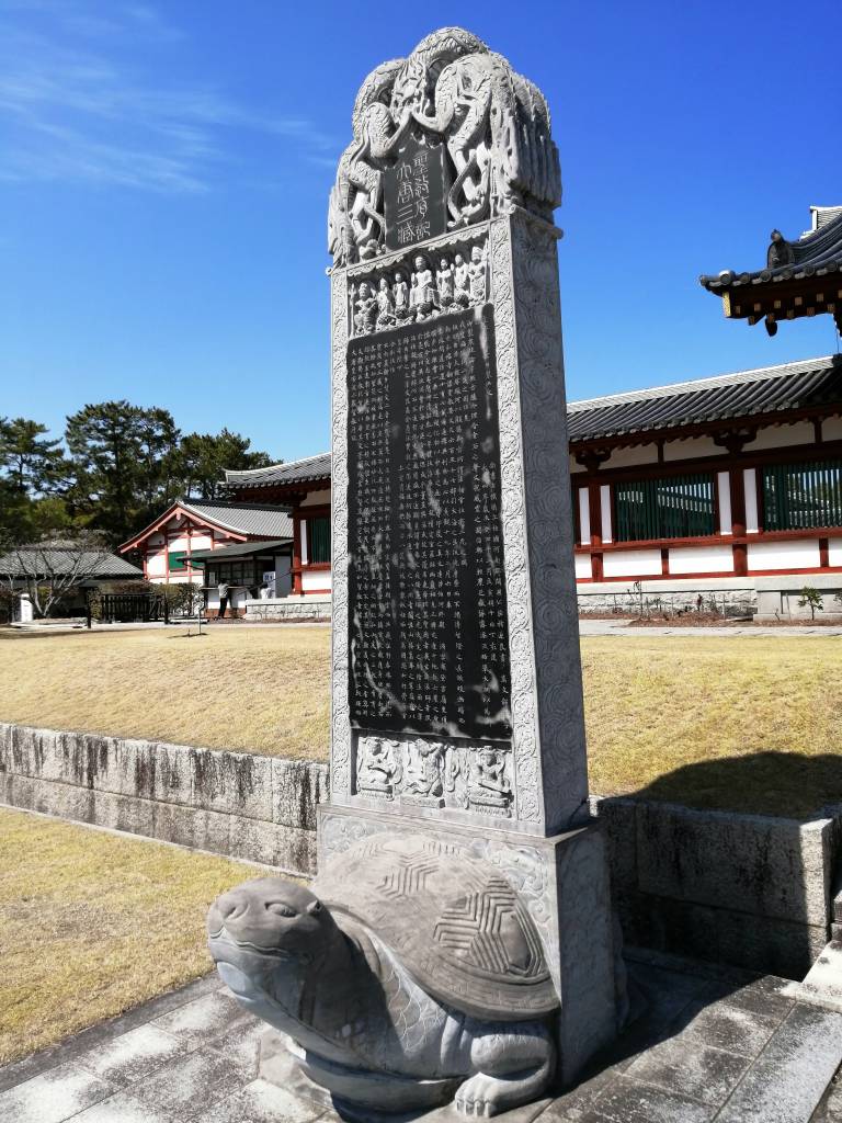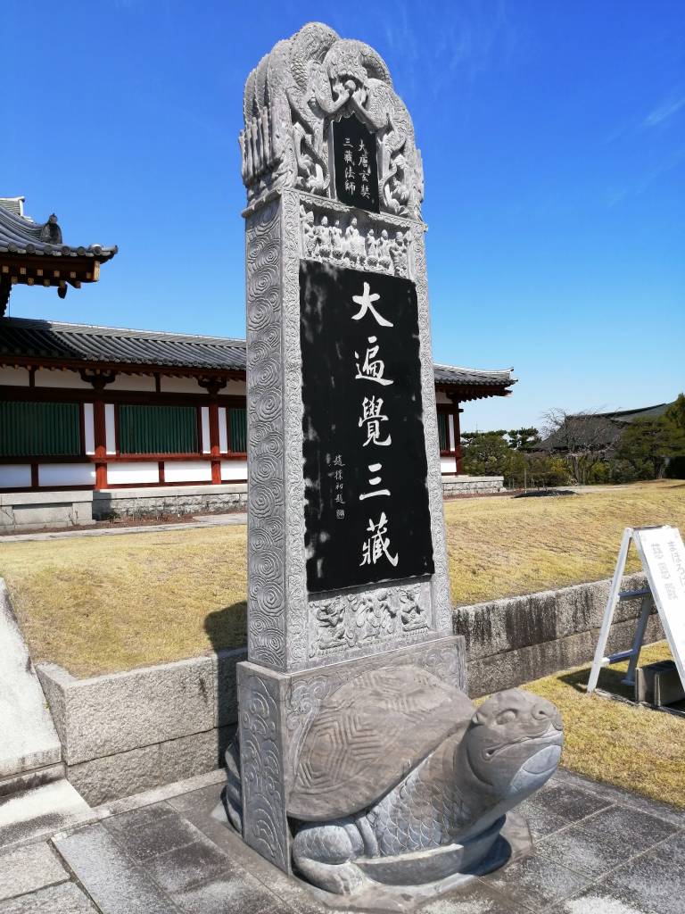 玄奘塔の正面には故・高田好胤和上の染筆で「不東」の二文字が輝きます。