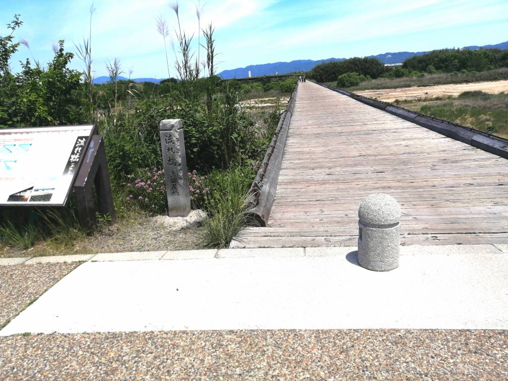 木津川に架かる全長356.5mの日本最長級の木橋。この名は、増水時の抵抗を少なくするため、床板が流れるように設計されていることに由来する。白砂の河原と清流に調和した風景は、時代劇などのロケにたびたび利用される。