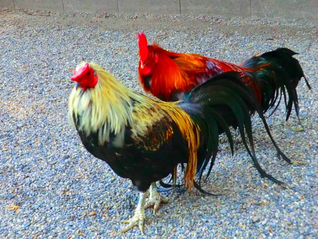 そのため鶏たちは夕方暗くなる前に低い木々から順々に高い枝に飛び上がり、そこで一夜を過ごしています。