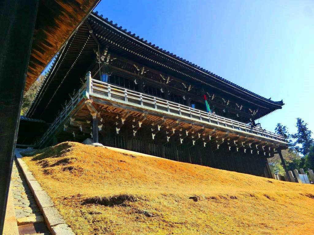 鎌倉時代の東大寺復興に大きな足跡を残した重源上人を継ぎ、大勧進となった栄西禅師が承元年間(1207~11)に再建したもので、大仏様にやや禅宗様的要素を加味した豪放な建物である。重さ26.3tもある梵鐘(国宝)は東大寺創建当初のもので、鐘声の振幅は非常に長く、「奈良太郎」と愛称され、日本三名鐘のひとつに数えられている。