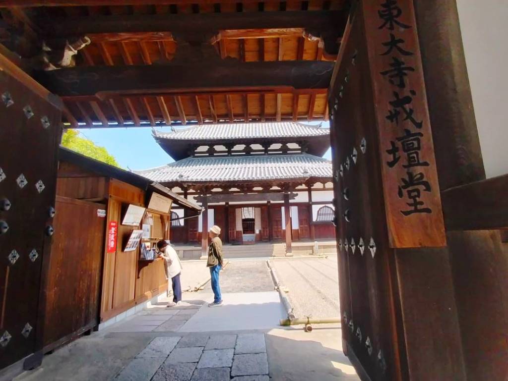 天平勝宝6年聖武天皇が受戒したとき、ここに座して大仏殿の方を向いて三礼した場所らしい