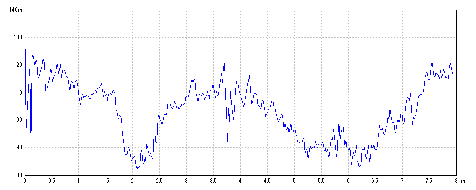 | 総上昇量 | 128m | 総下降量 | 126m |