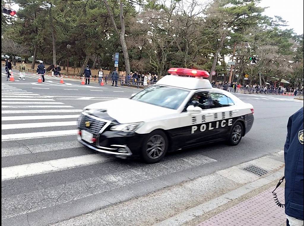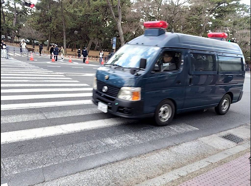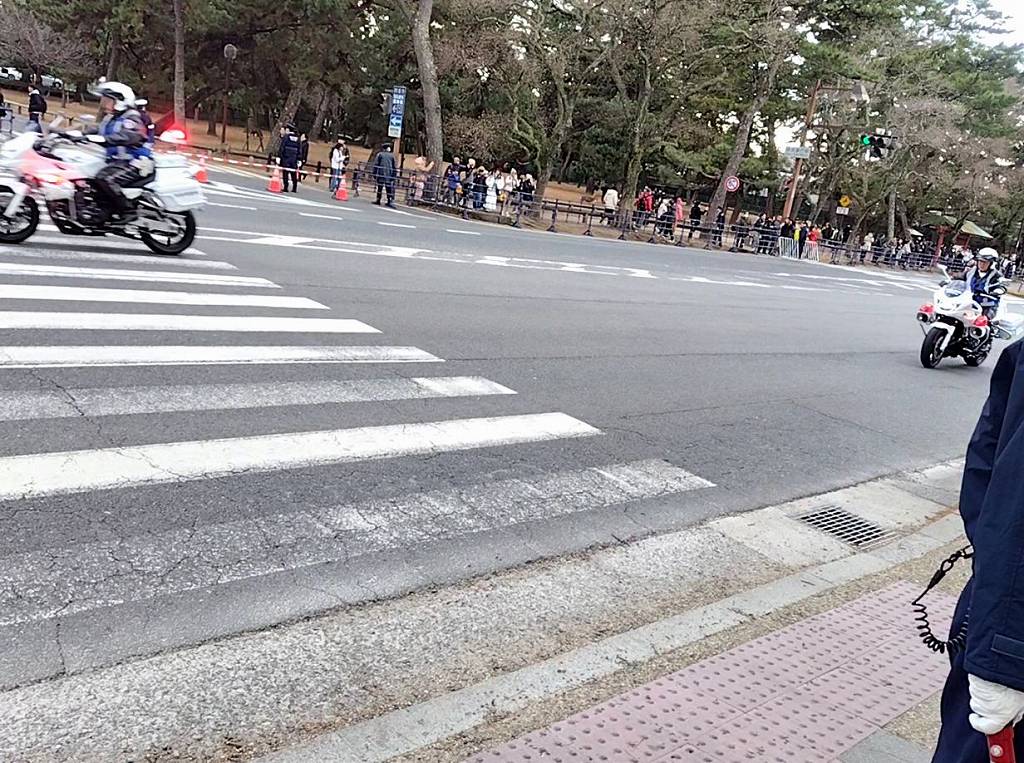 東大寺から大通りにかけて 多数の警察がズラッと並んで警備
