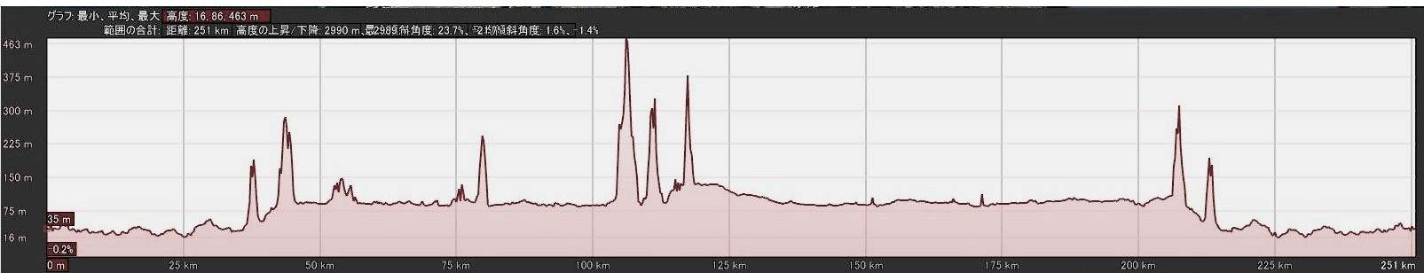 | 水平距離 | 251.21km | 沿面距離 | 251.21km |