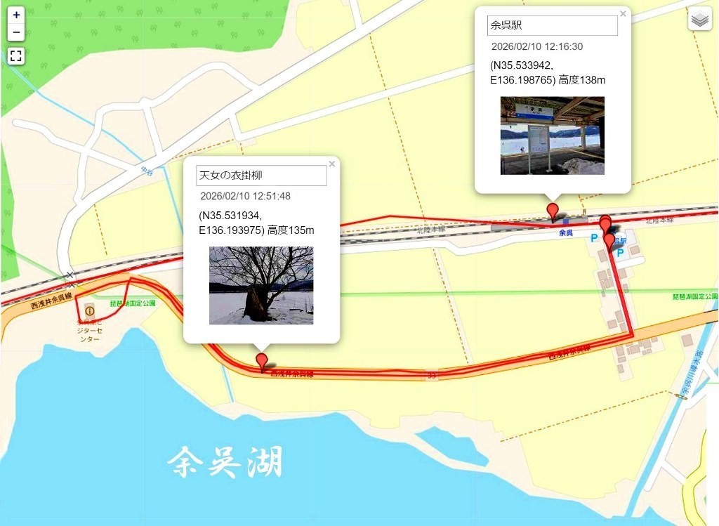 ⇒ 余呉(13:10) ⇒ 北陸本線(米原経由) ⇒ 京都(15:07) ⇒ 木津(15:44) ⇒ 祝園(16:06) ⇒ 帰宅(16:24)