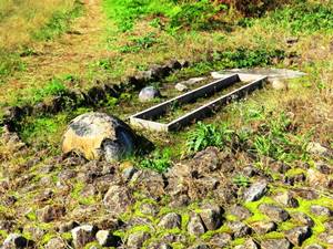 垣の中に猿石と呼ばれる花崗岩の石像が四体ある。